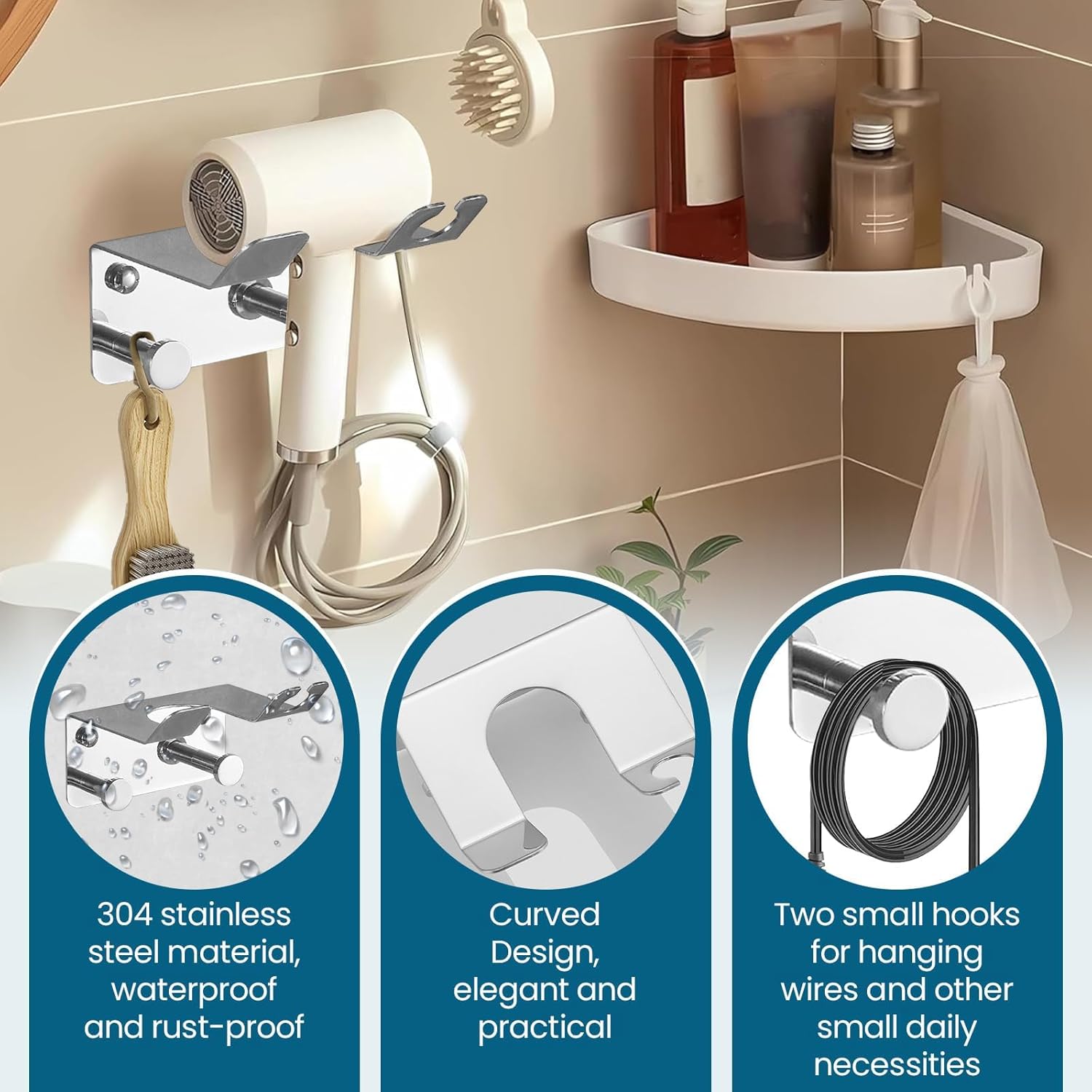 Transformez votre espace de beauté avec ce support sèche-cheveux en acier inoxydable 304, alliant fonctionnalité et style. Grâce à sa conception élégante et durable, cet accessoire devient un incontournable de votre salle de bain, offrant un rangement pratique et une touche moderne à votre décor tout en conservant votre sèche-cheveux à portée de main.