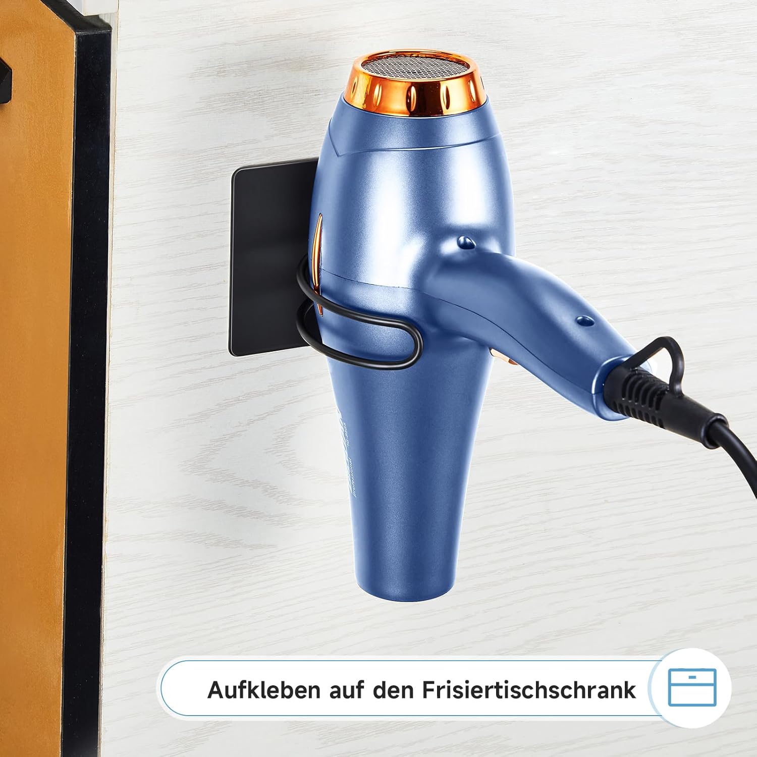 - Conçu pour faciliter l’organisation, ce support garde votre sèche-cheveux à portée de main.