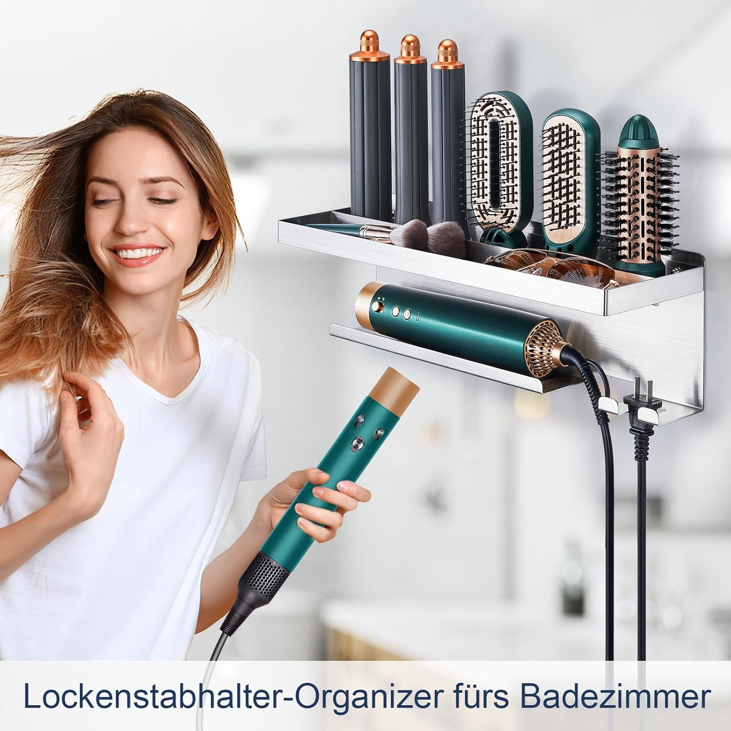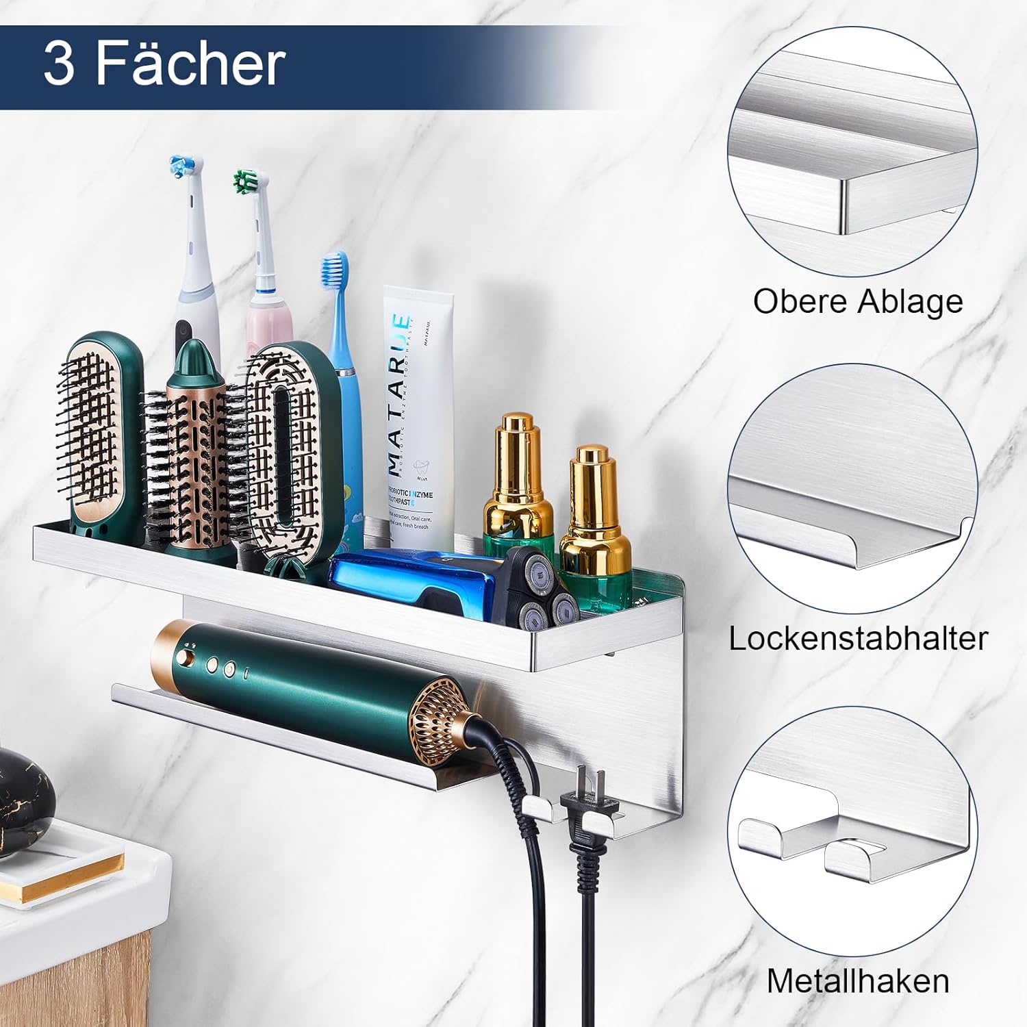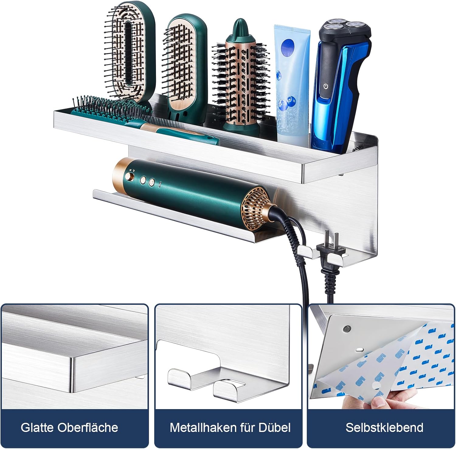 Avis et témoignages clients sur : LOXSUN Support Sèche-Cheveux Mural & Lisseur – Organiseur de Salon sans Percage pour Fer à Boucler, Brosse Soufflante et Accessoires – en Acier Inoxydable, Idéal Salle de Bain