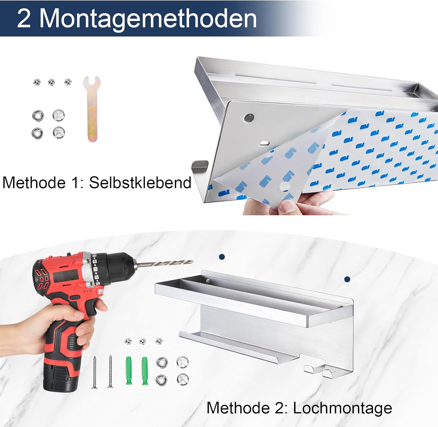 Fabriqué en acier inoxydable SUS304, ce support résiste à l’humidité et à la rouille, garantissant une durabilité exceptionnelle dans des environnements comme la salle de bain. Ses caractéristiques incluent :