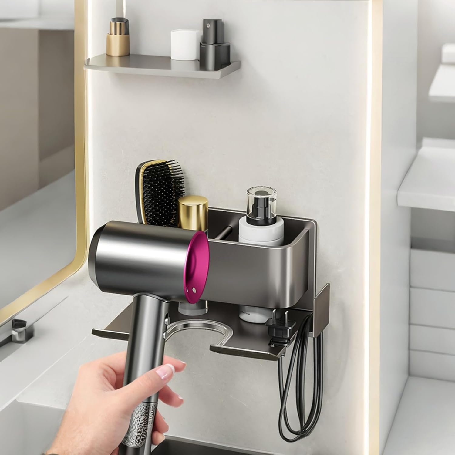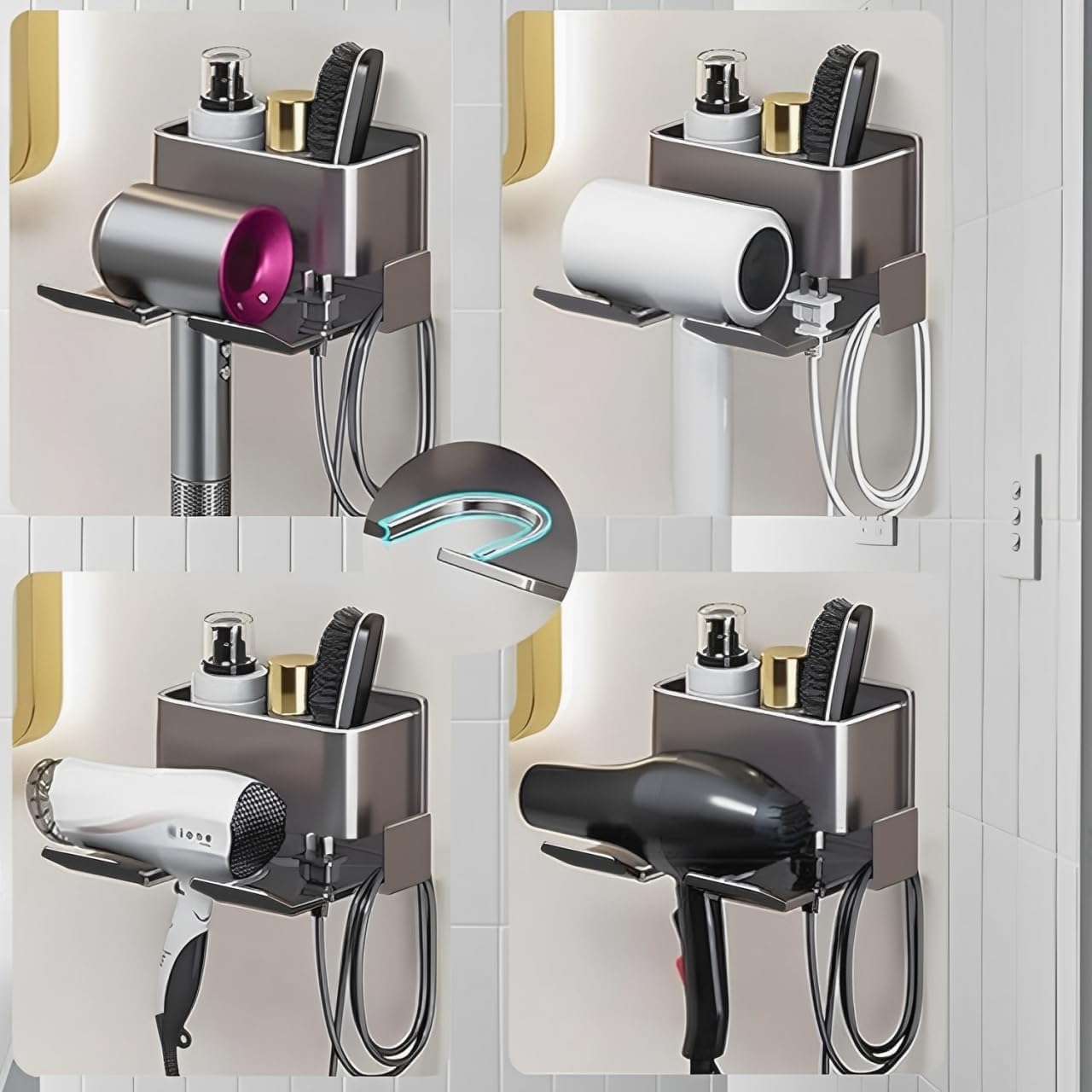Réponse : Oui, ce support est compatible avec la plupart des modèles de sèche-cheveux, ce qui le rend idéal pour diverses installations, y compris à la maison ou dans des salons de beauté. - Question : Comment cet organisateur protège-t-il mes outils capillaires ?