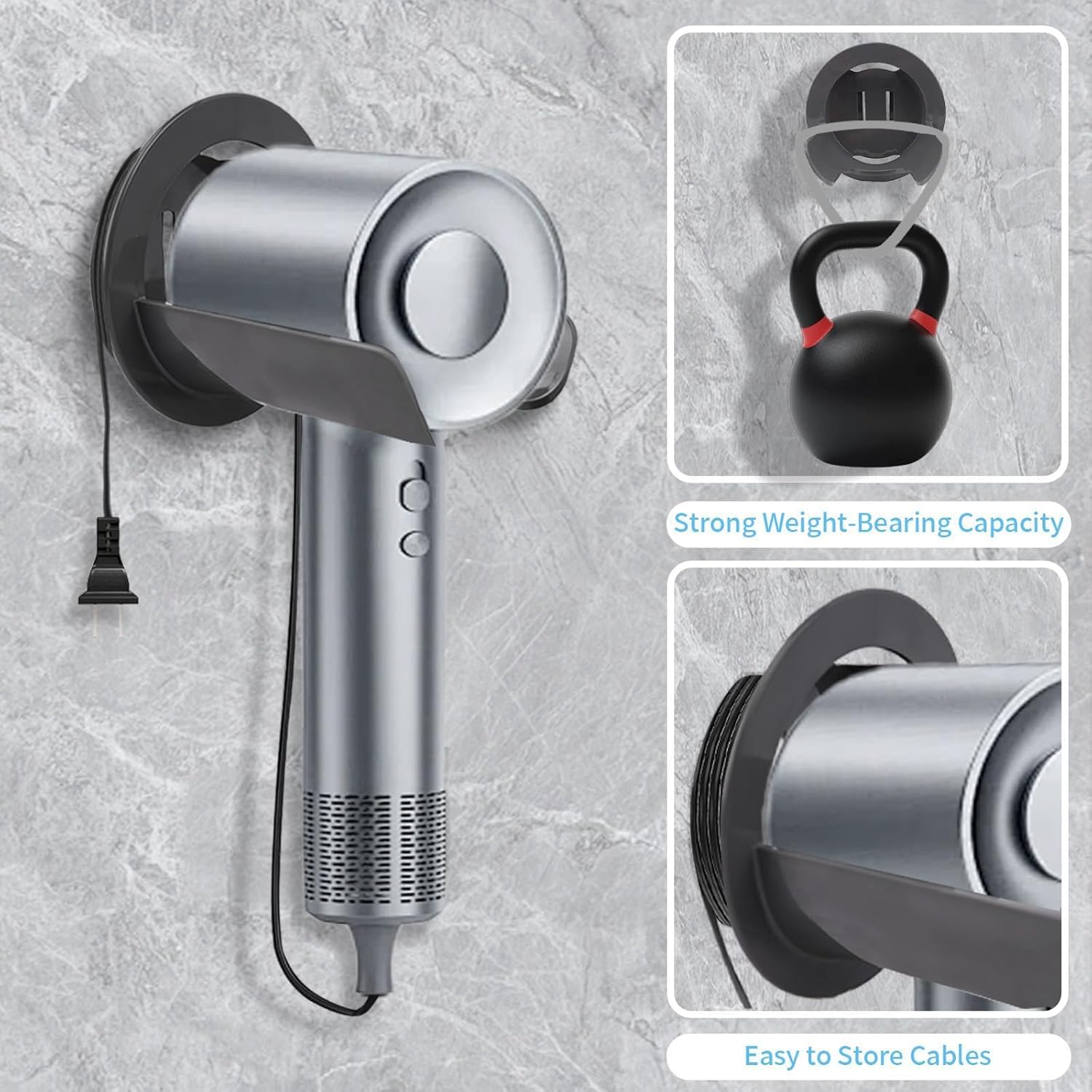 - Grâce à sa capacité de charge élevée, vous pouvez ranger votre sèche-cheveux en toute sécurité.