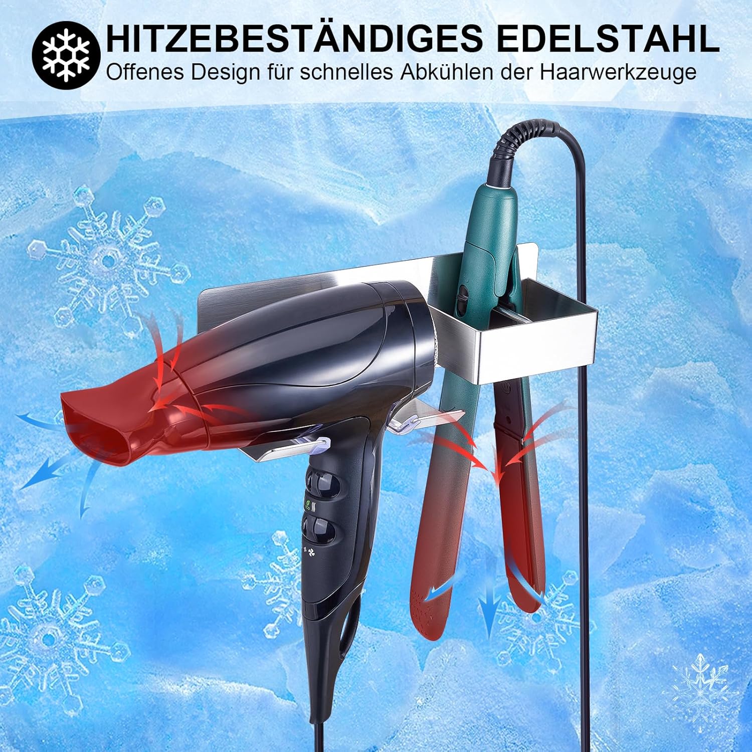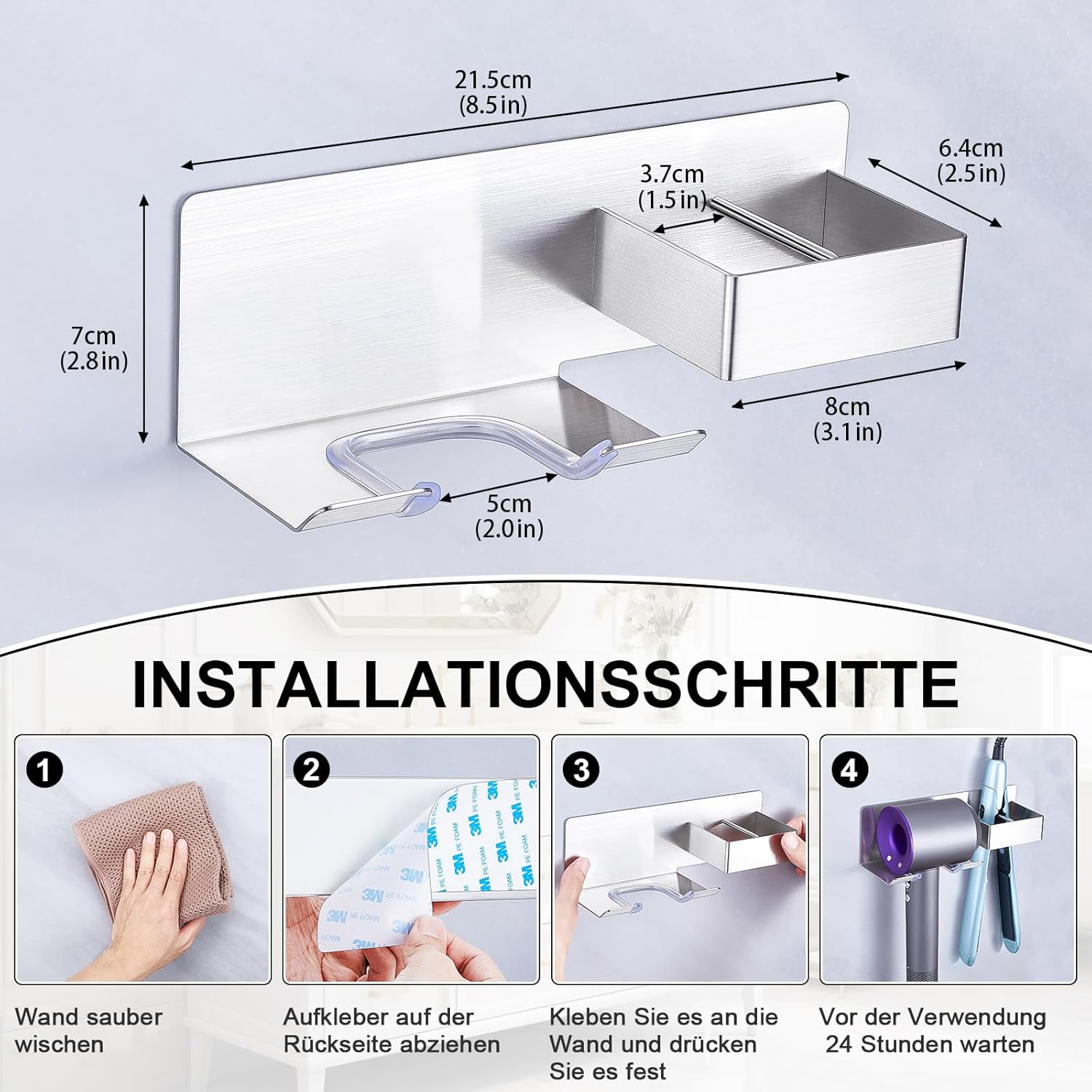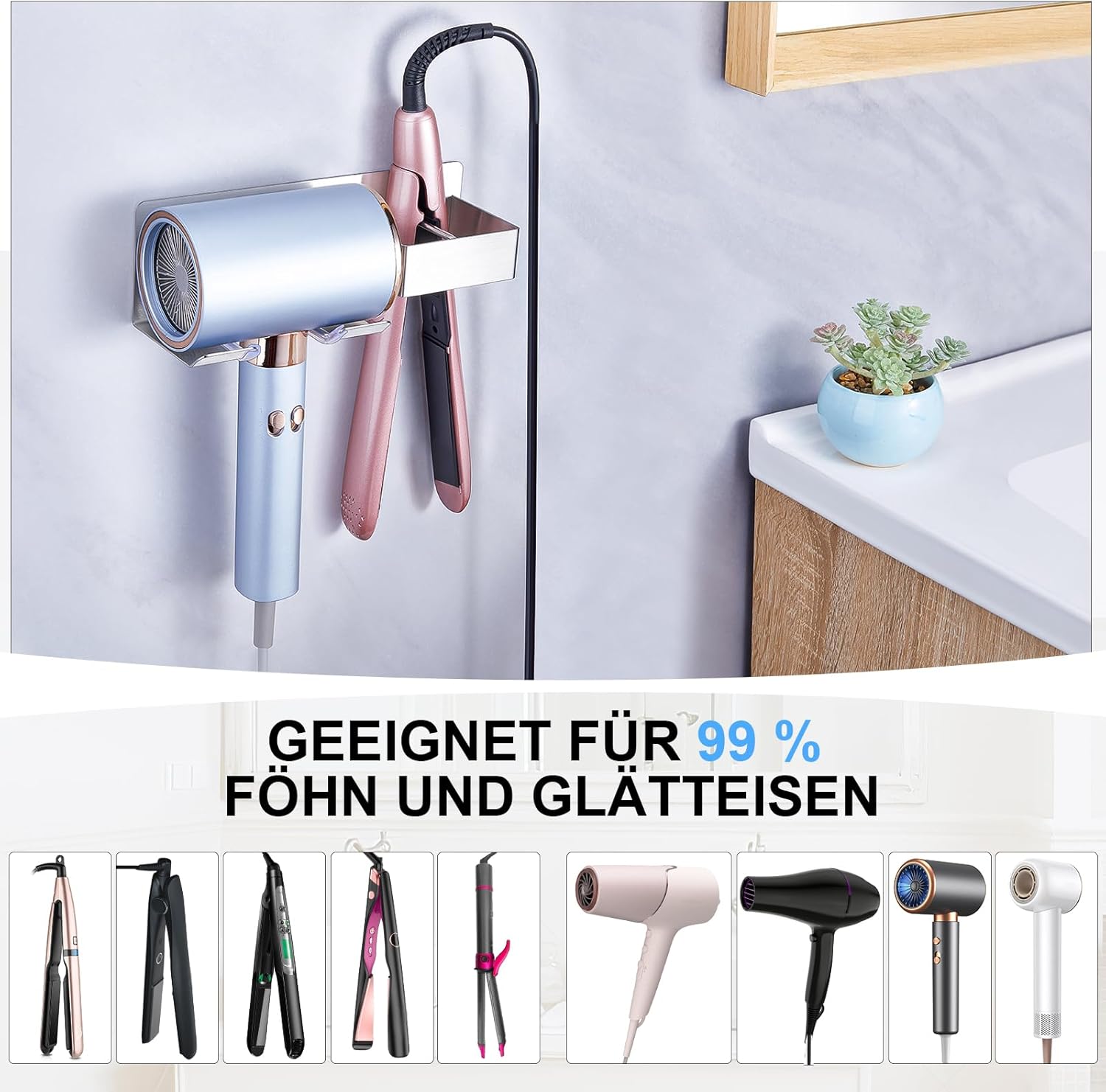 Avis et témoignages clients sur : Support Seche Cheveux Sans Percage, WAYASI Accroche Seche Cheveux Mural pour Sèche-Cheveux et Lisseurs, Auto-Adhésif Support Seche Cheveux Inoxydable pour Salle de Bain Salon de Coiffure Hôtel
