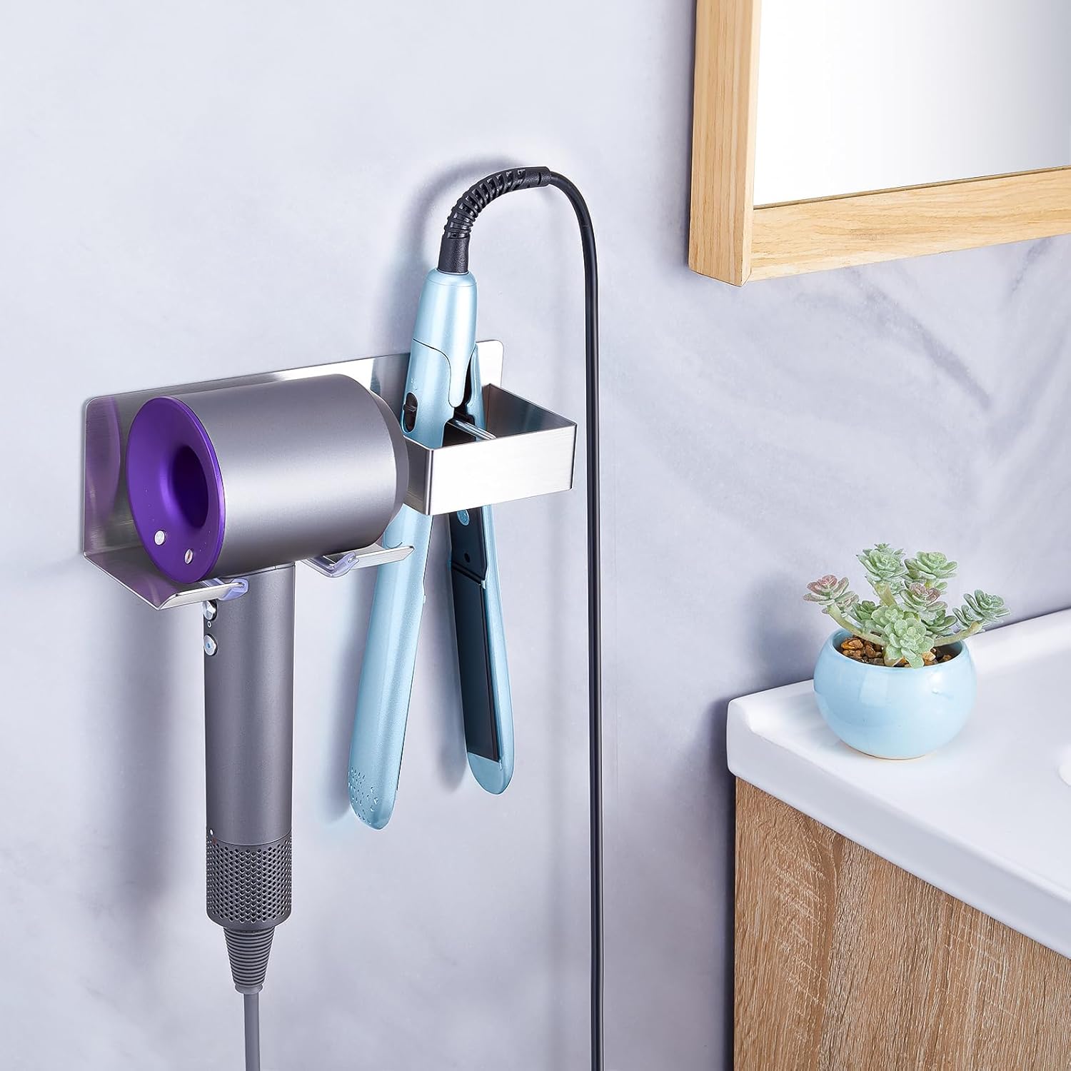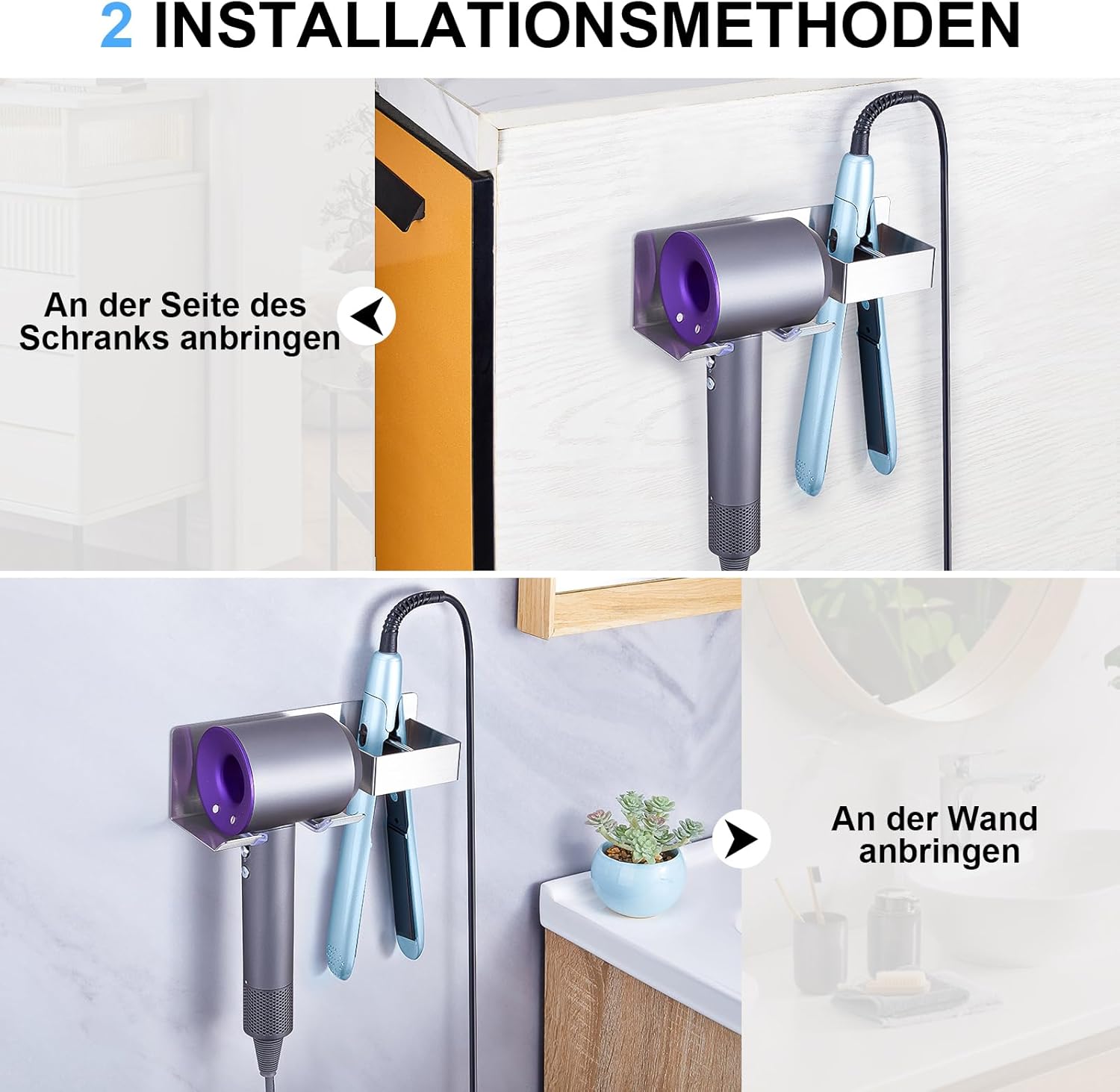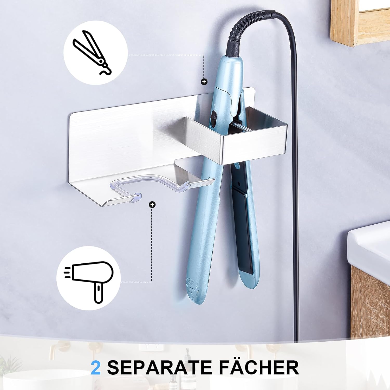 Avis et témoignages clients sur : Support Seche Cheveux Sans Percage, WAYASI Accroche Seche Cheveux Mural pour Sèche-Cheveux et Lisseurs, Auto-Adhésif Support Seche Cheveux Inoxydable pour Salle de Bain Salon de Coiffure Hôtel