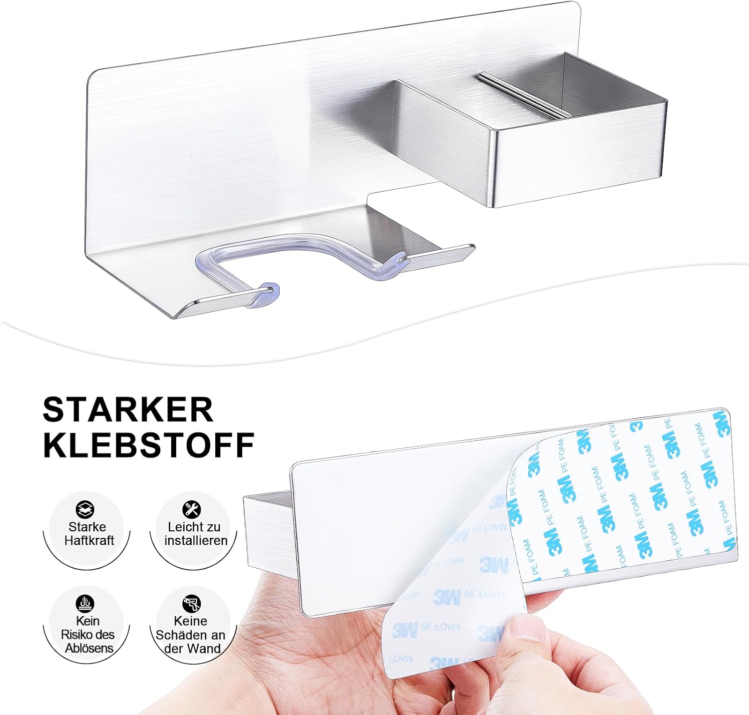 Réponse : Le support est doté d’un adhésif puissant à l’arrière, permettant une installation facile sans perçage. Pour le retirer, il suffit de le chauffer avec un sèche-cheveux pendant quelques minutes. - Question : Est-ce que le support aide à organiser l’espace ?