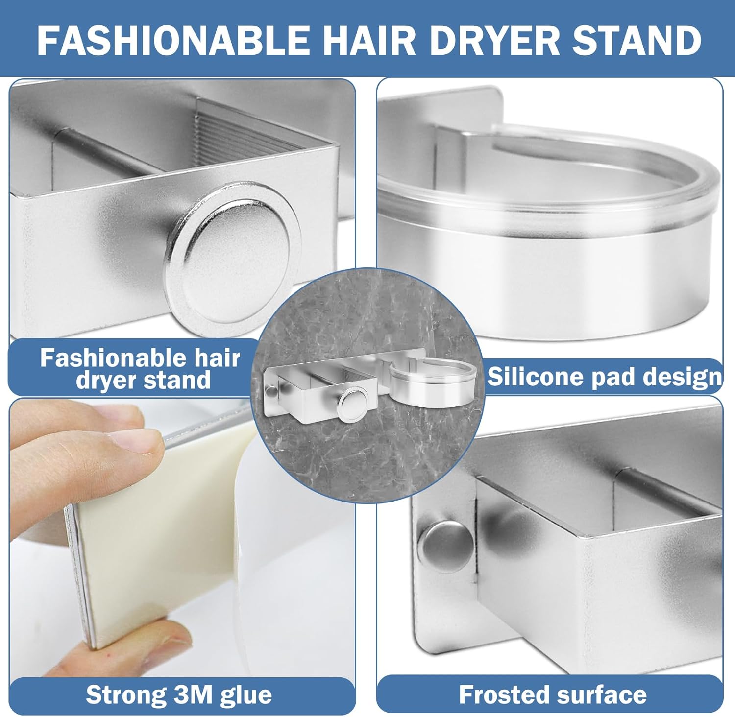 Réponse : Ce support est fabriqué en acier inoxydable de haute qualité, résistant à la rouille et à la corrosion, avec une surface traitée pour éviter les rayures. - Question : Est-ce que ce support convient à tous les modèles de sèche-cheveux ?