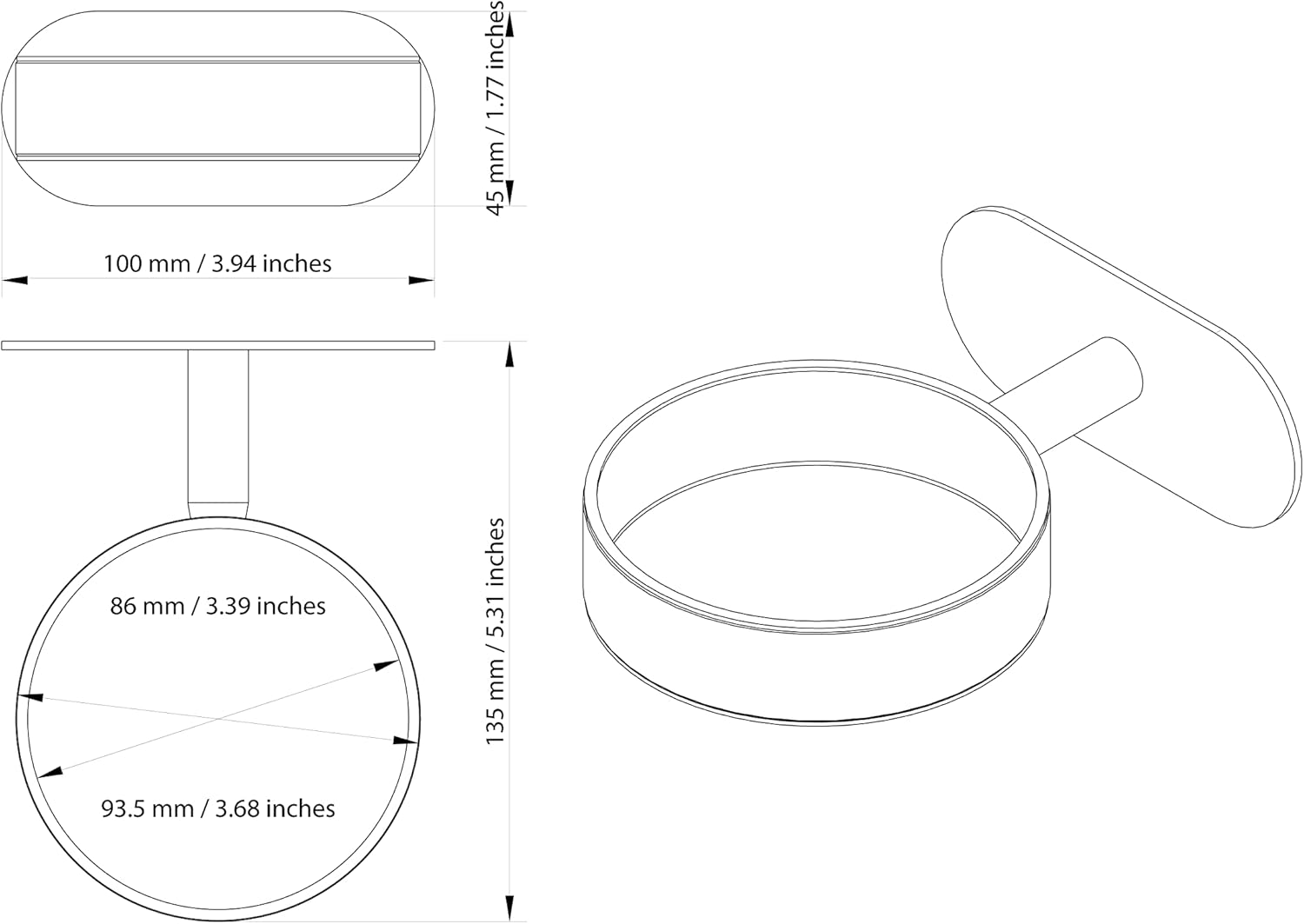 - Les dimensions compactes de 100 mm x 135 mm x 45 mm le rendent idéal pour toutes les salles de bain.