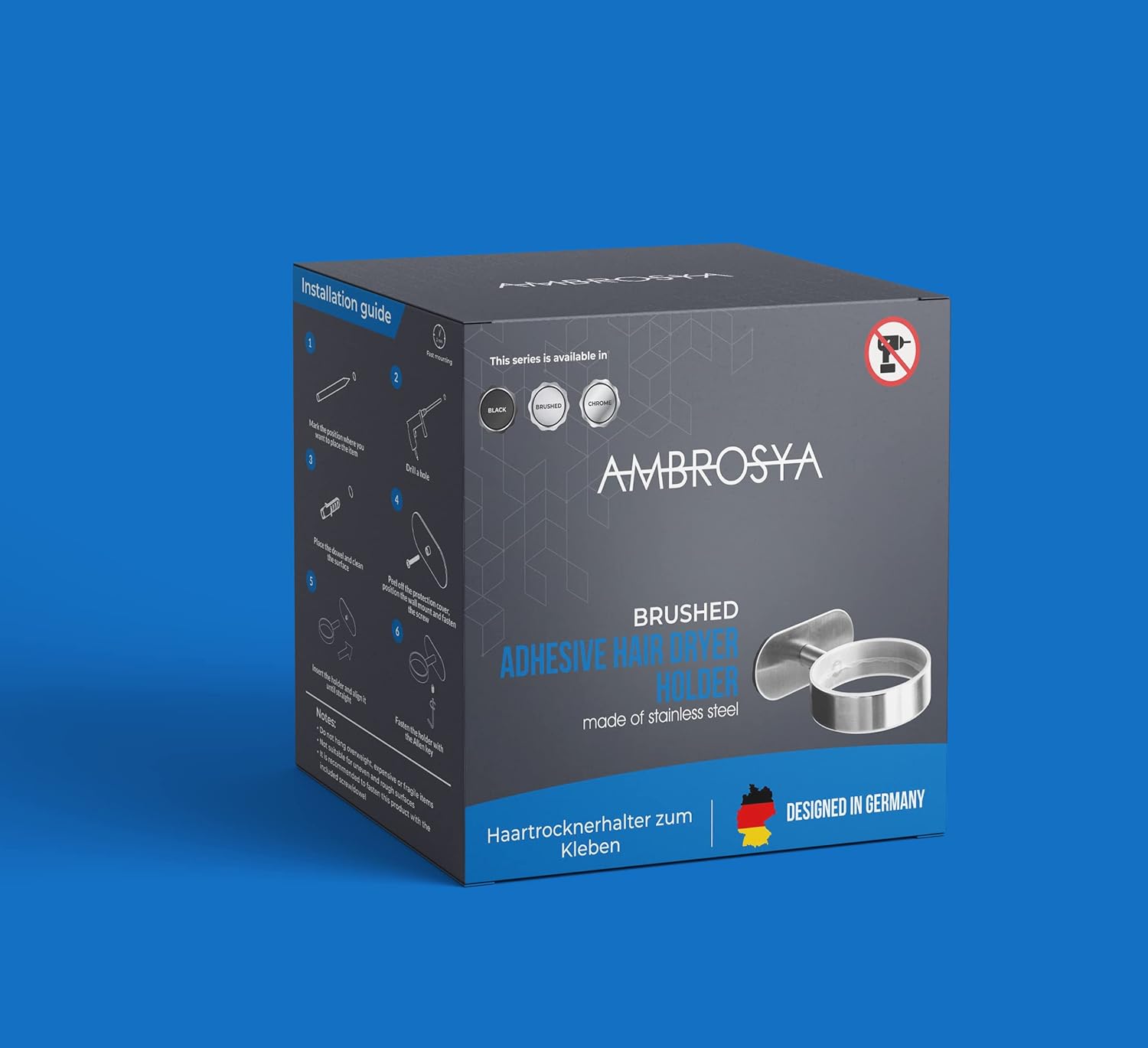 Avis et témoignages clients sur : Ambrosya – Support Sèche-Cheveux sans Perçage – Titulaires de Sèche-Cheveux Mural A Coller (Acier Inoxydable (Brossé))