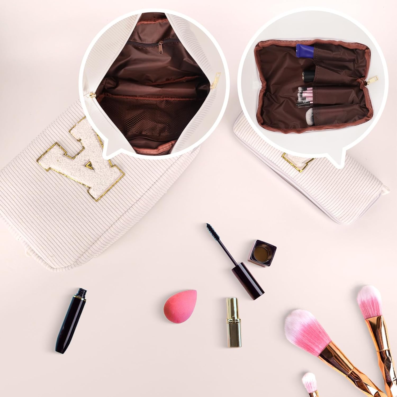 Trousse de Maquillage Velours Côtelé Élégante et Pratique
