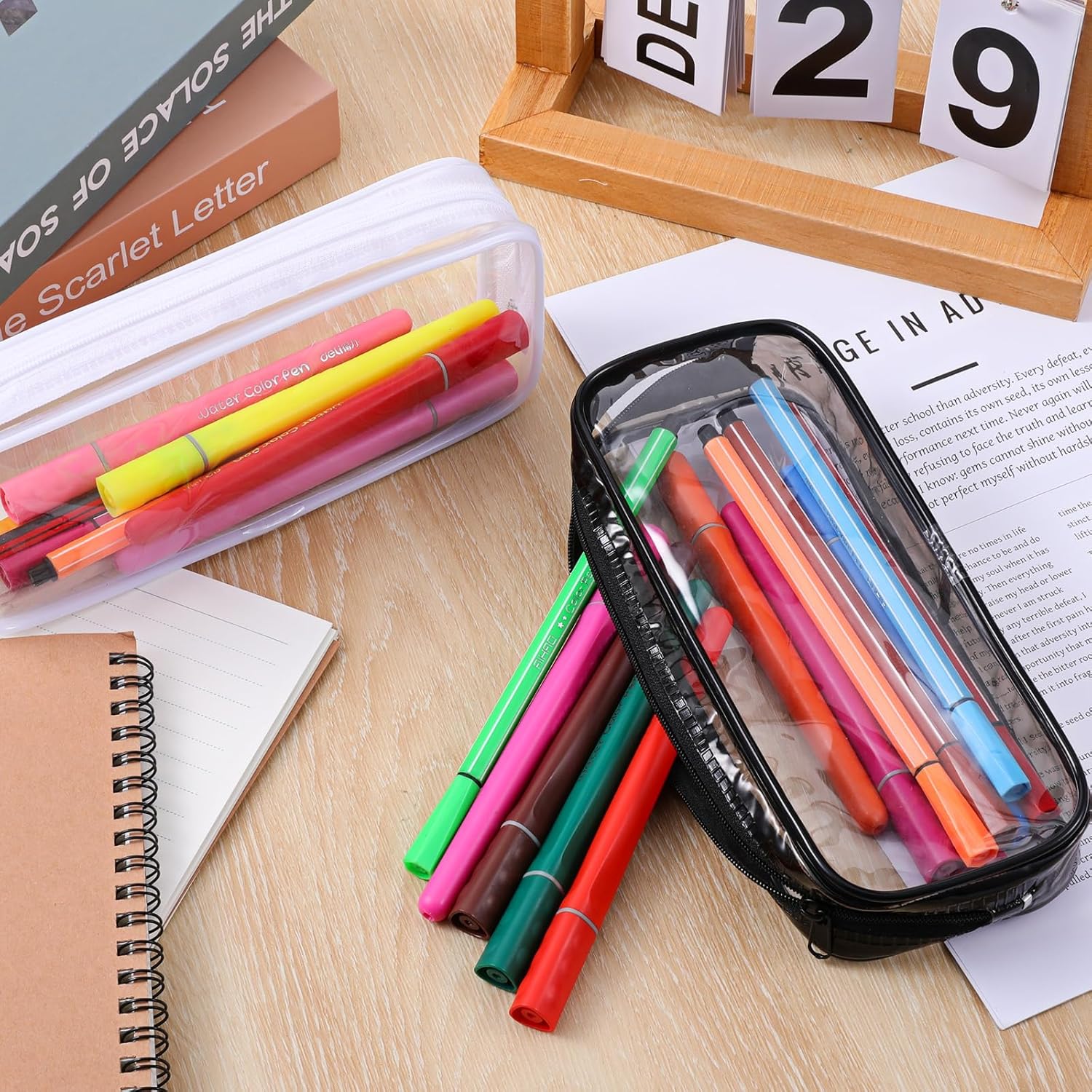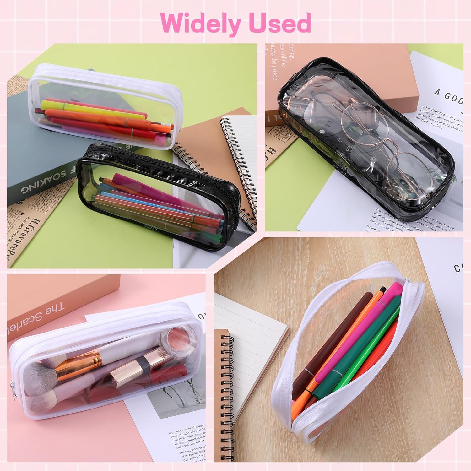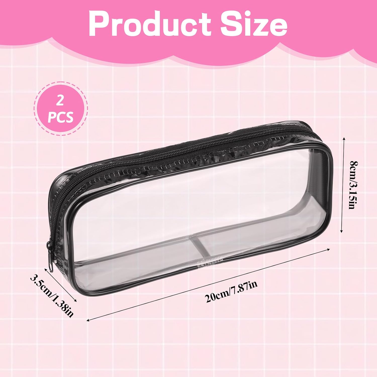 Avis et témoignages clients sur : ZEYIYER Lot de 2 trousses de maquillage transparentes avec fermeture éclair – Étuis de pinceaux de maquillage étanches pour le voyage et les articles de toilette (noir et blanc), Transparent