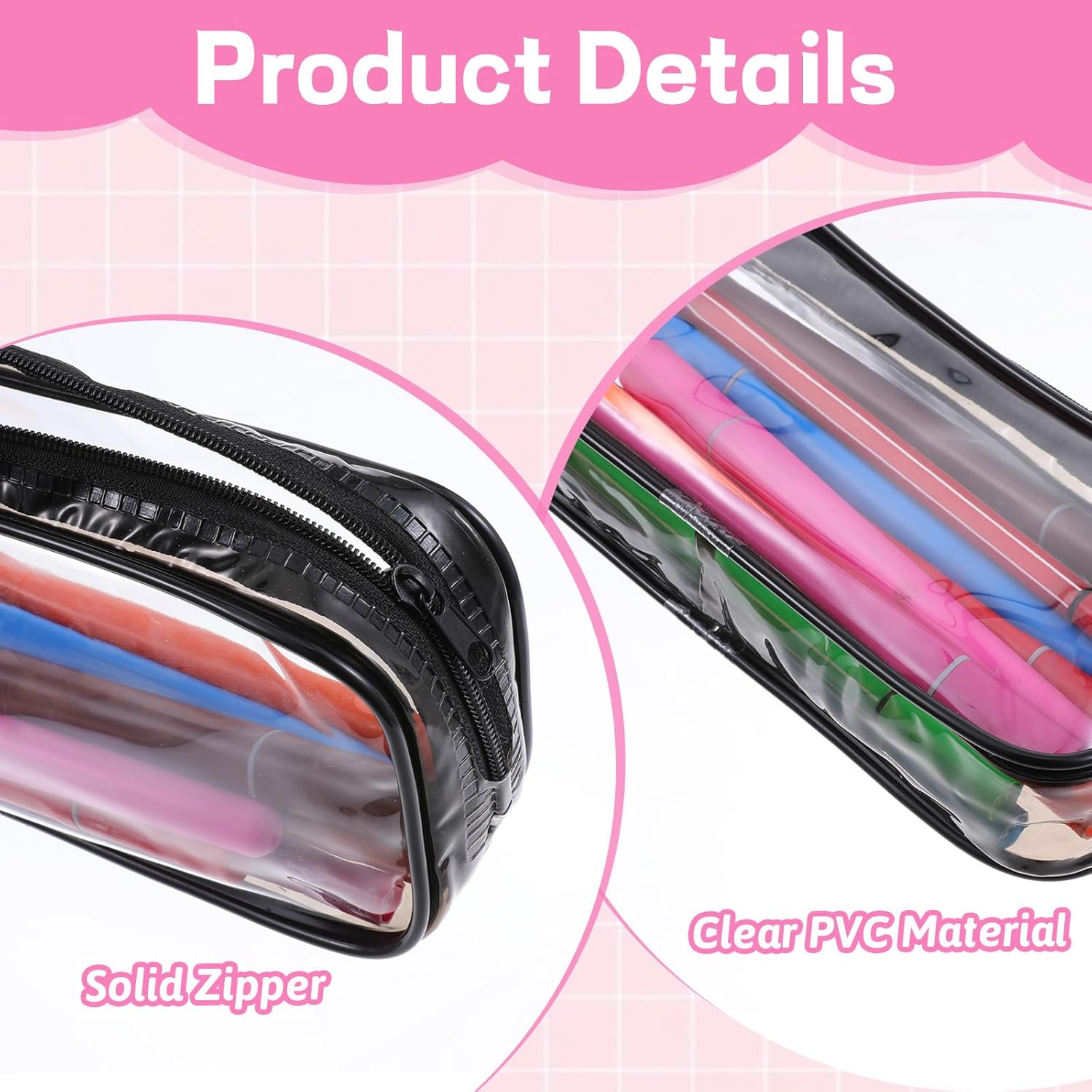 Les trousses de maquillage sont fabriquées en PVC transparent, ce qui les rend à la fois étanches et faciles à nettoyer.
