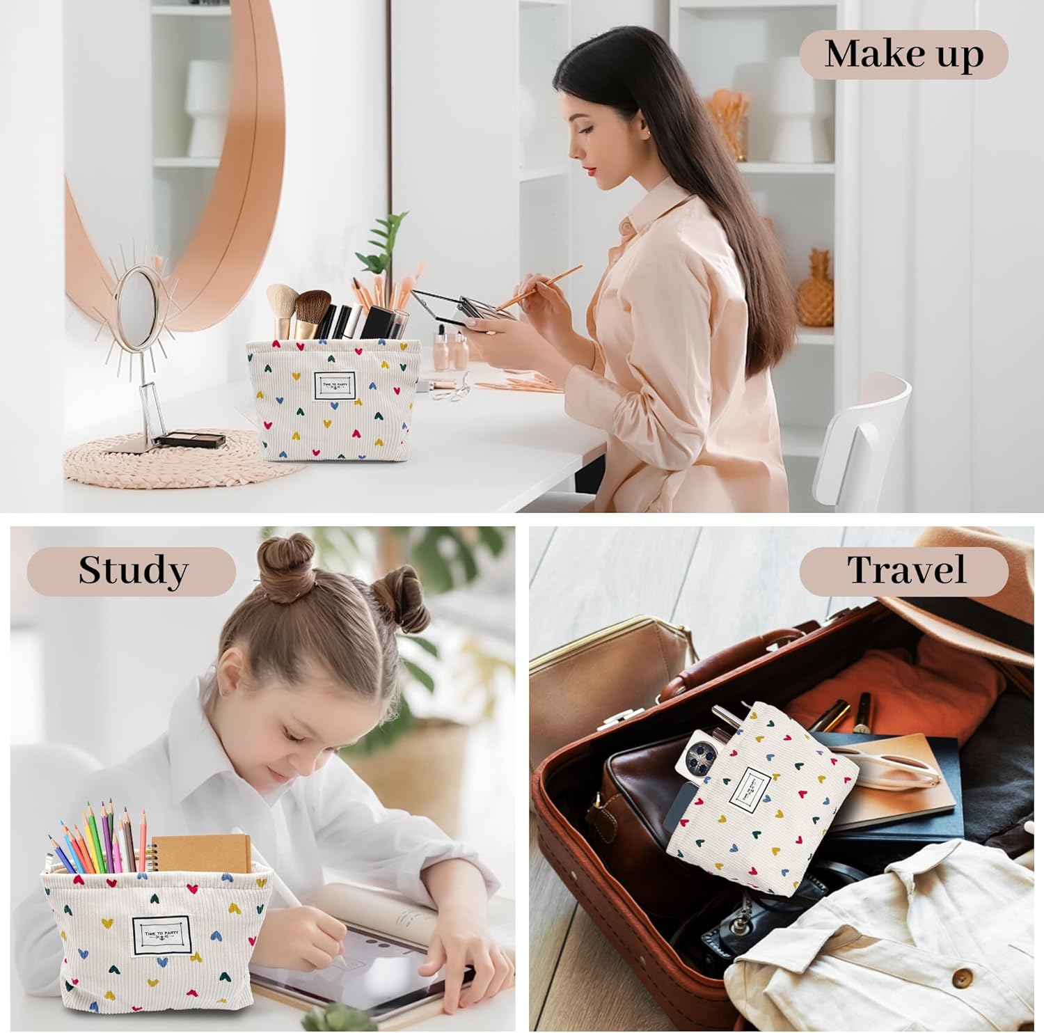 La trousse de maquillage pour femme se distingue par son motif de cœur raffiné, apportant une touche personnelle et féminine à votre collection de cosmétiques. Que ce soit pour une utilisation quotidienne ou lors d’un voyage, cette trousse saura vous séduire par son esthétique et son utilité.