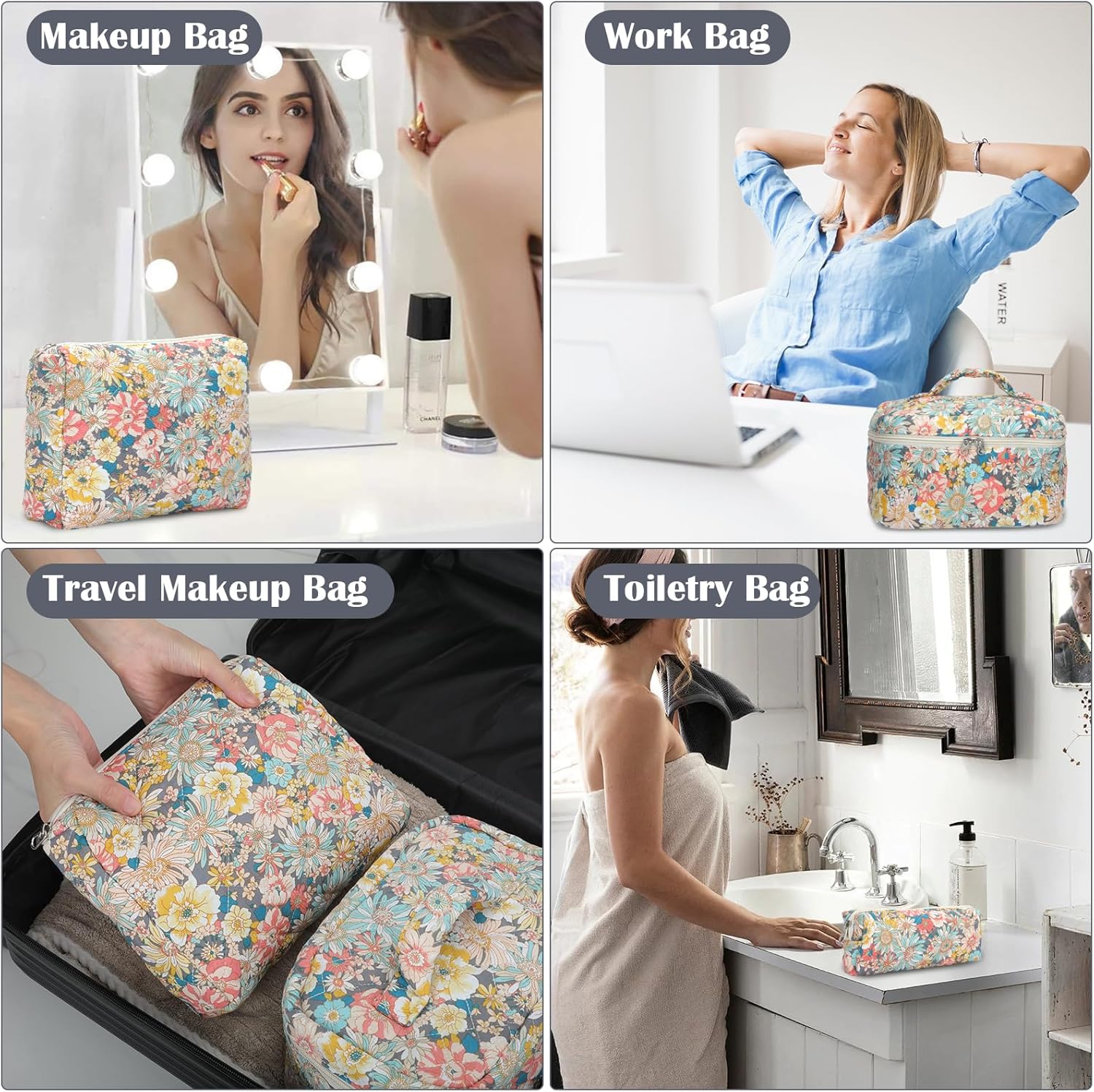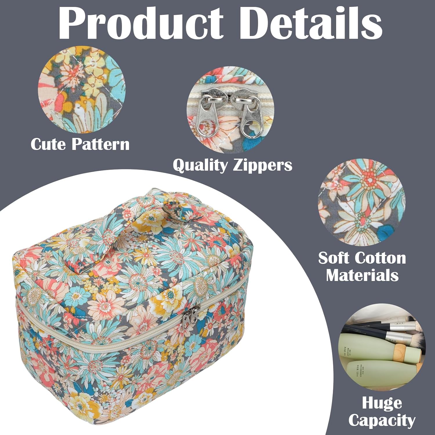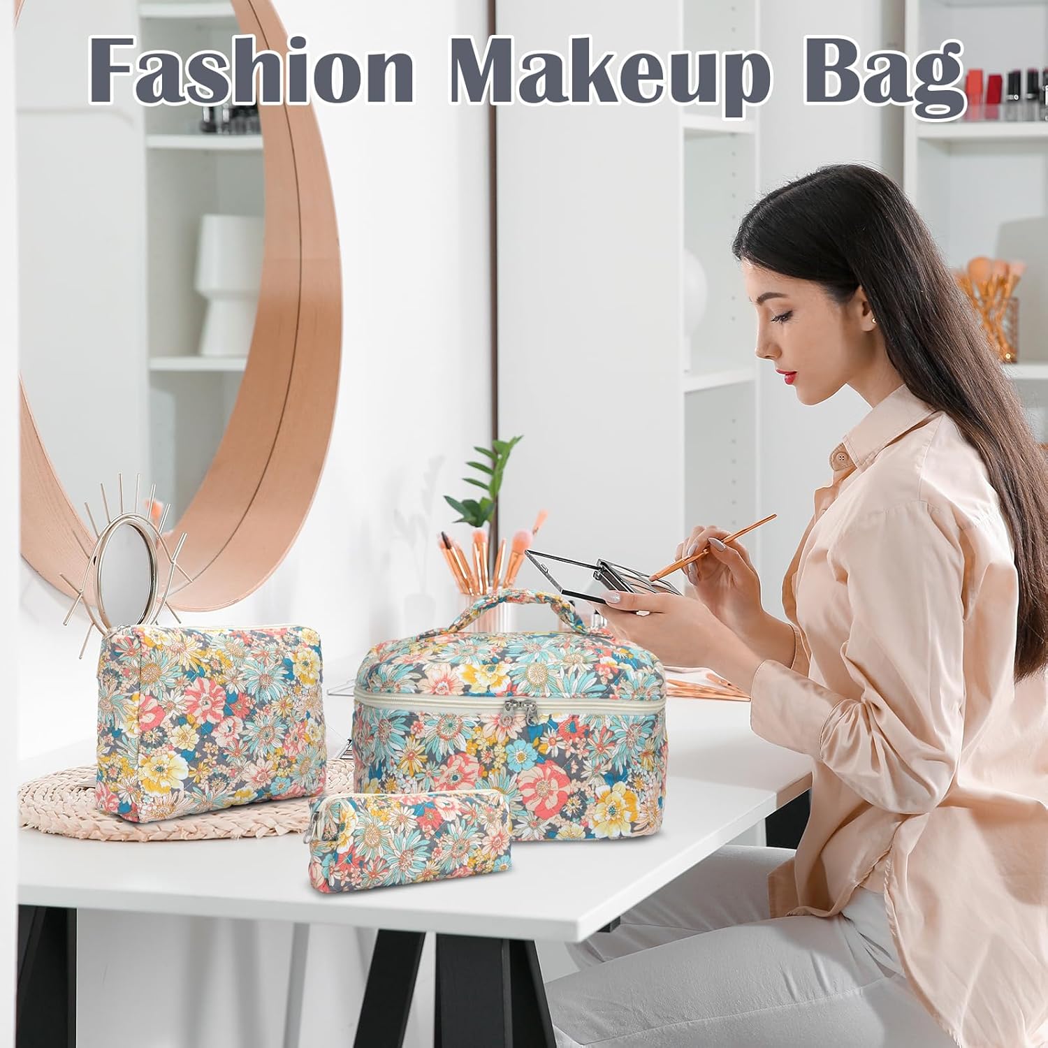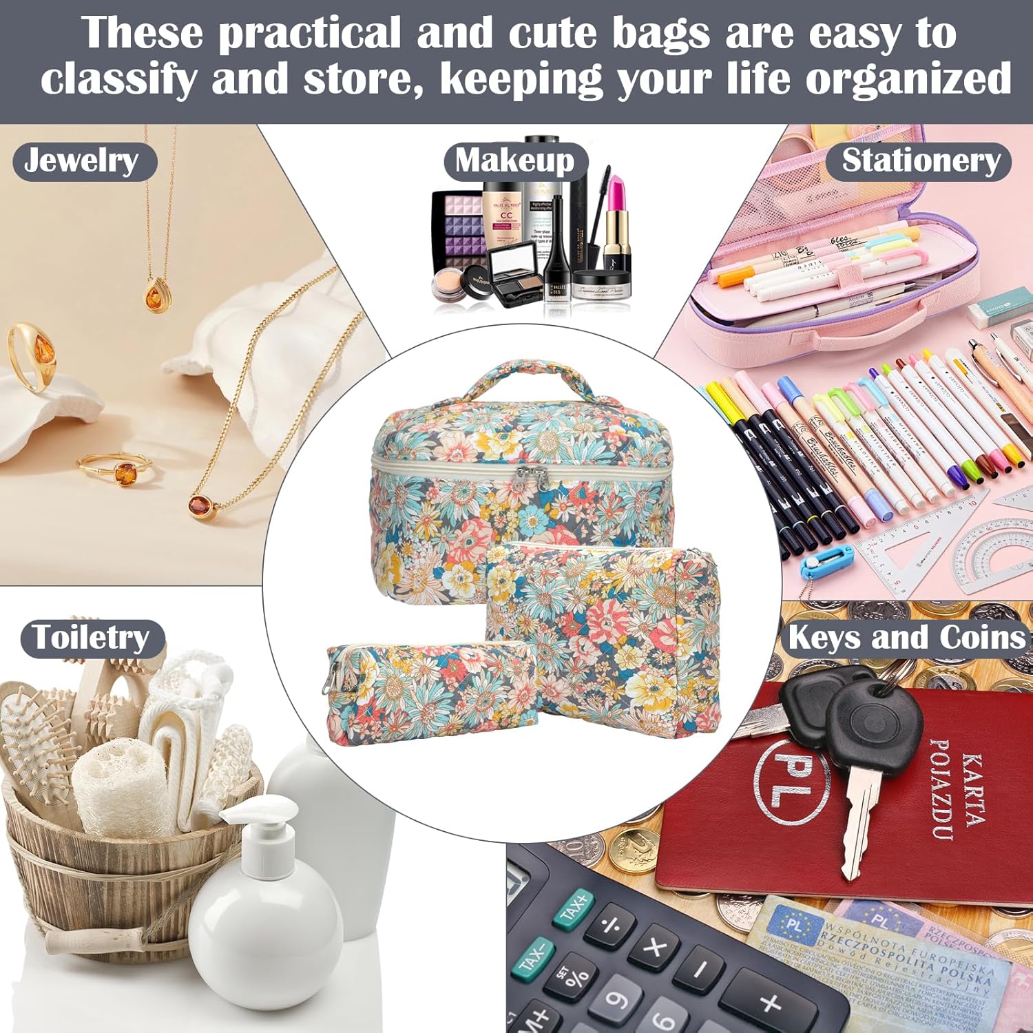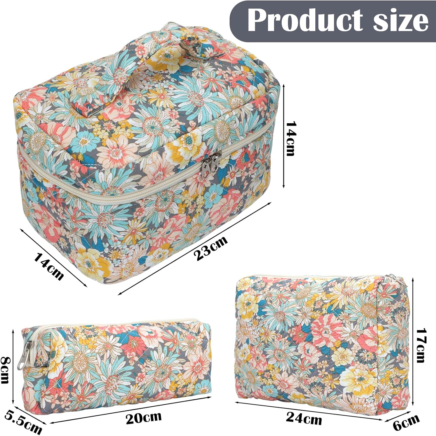 Avis et témoignages clients sur : KOMABLEN Lot de 3 Trousse de Toilette Femme Trousse Maquillage Trousse Matelassée Fleurie en Coton Doux Cosmétiques Portable Grande Pochette Maquillage Organiseur Cosmétique Voyage