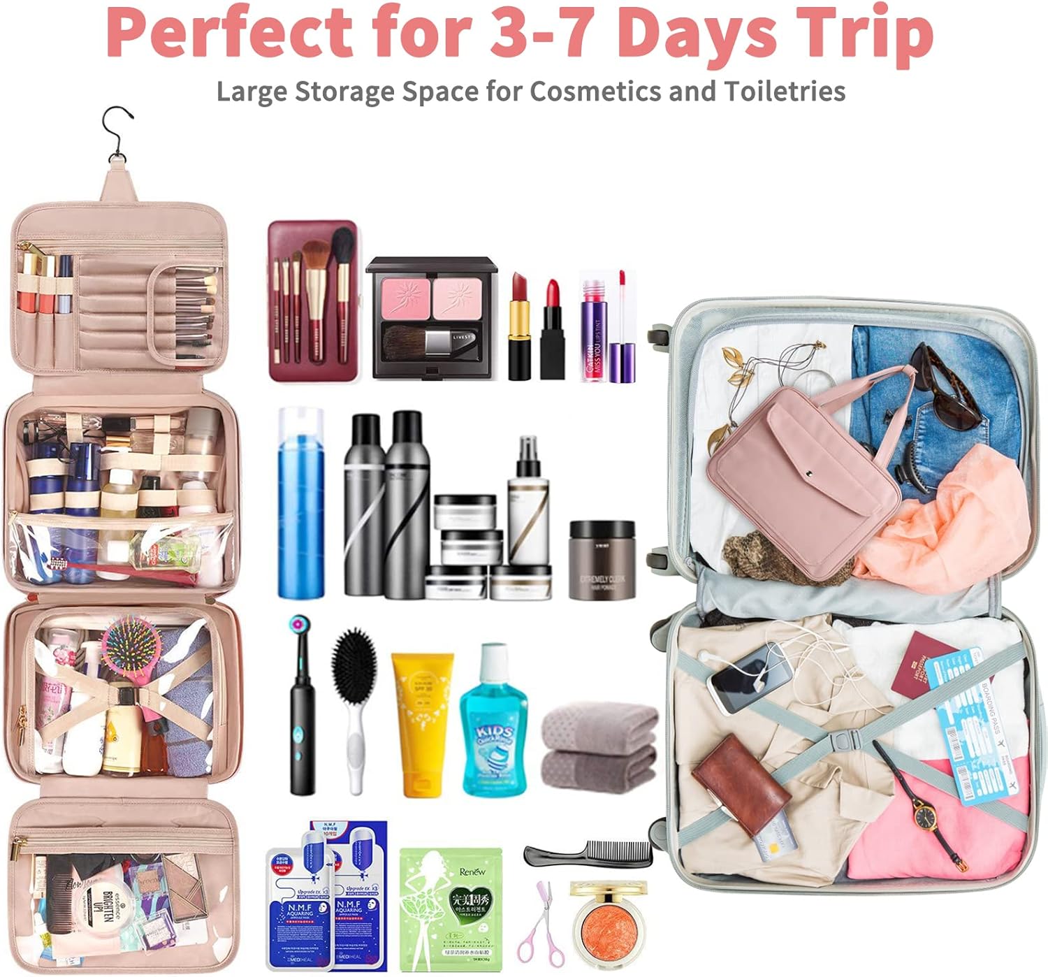 Hansedeern : « Tout ce dont une femme a besoin en voyage ! Avec un bon agencement, je peux mettre tout mon nécessaire de toilette. Pratique à transporter et rapide à installer à destination. »