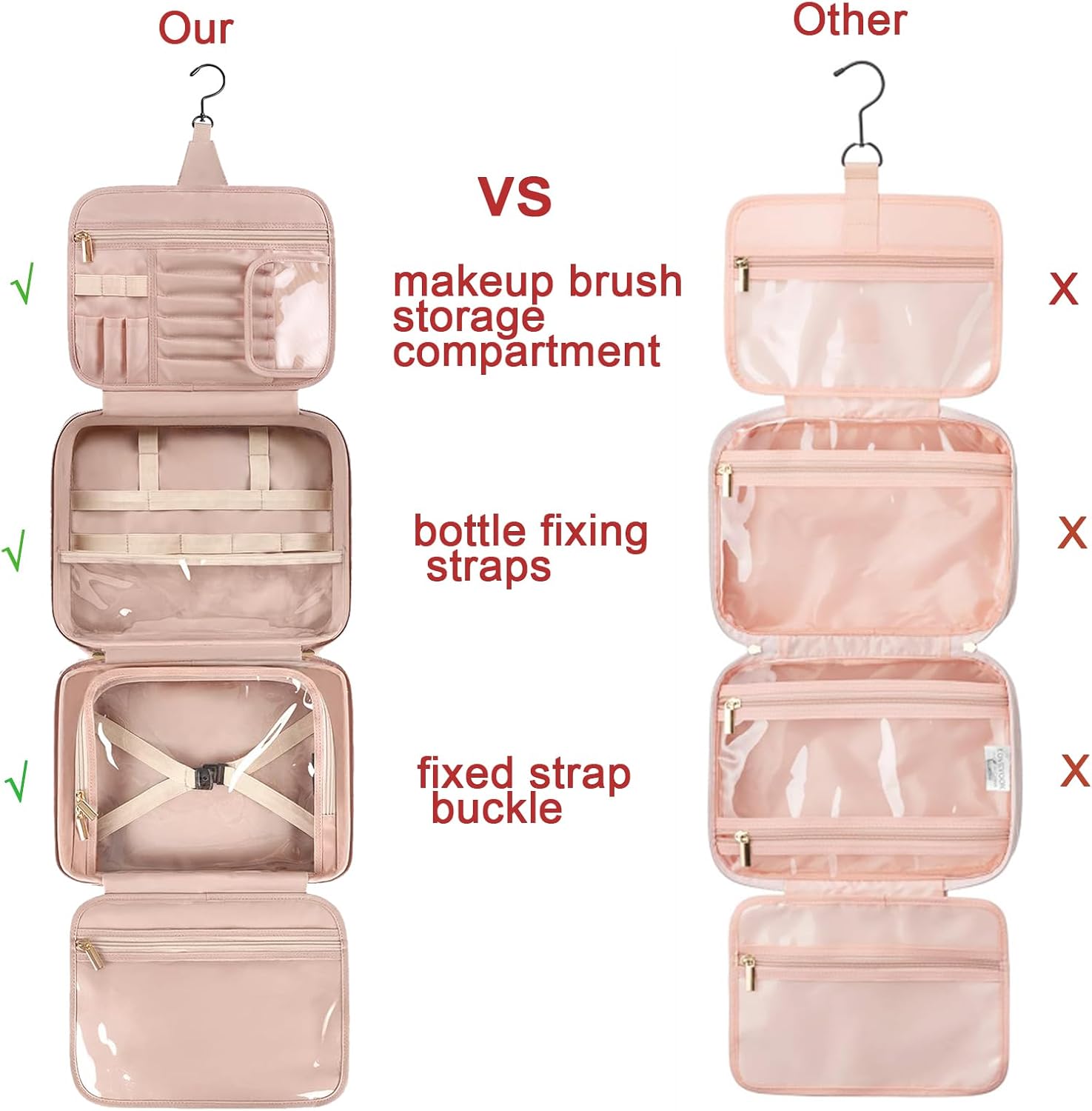 Réponse : La trousse dispose de 4 compartiments individuels et d’un compartiment extérieur, permettant une organisation optimale de vos produits de beauté. - Question : Est-ce que la trousse peut être accrochée ?
