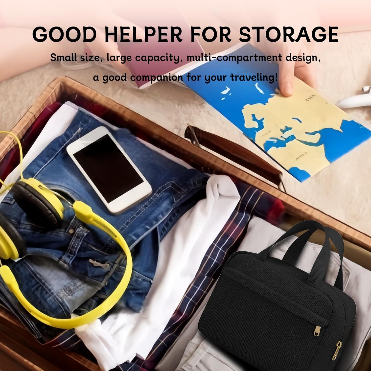 La trousse de toilette a une grande capacité, idéale pour ranger tous vos produits de beauté et de soin.